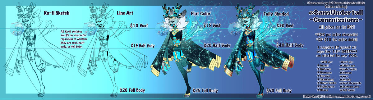 By ordering a commission from me, you automatically agree to these terms! Please read my TOS in full before ordering!- I can refuse any commission for any reason.